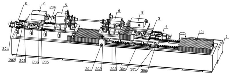 為了解決上述問題,本實(shí)用新型的目的在于提供了一種磨削效率高、管體兩端直線度好、適用不同長度的管體磨削和開環(huán)形槽的碳化硅管體雙頭打磨車床。