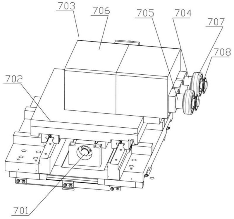 在一些實(shí)施方式中,第二移動部包括第二電機(jī)、齒輪、齒條、第二線軌、第二滑塊和第二安裝板,第二電機(jī)的的輸出端連接齒輪,齒條固定在床身上,齒輪與齒條嚙合,第二線軌與齒條平行設(shè)置,第二滑塊套設(shè)在第二線軌上,第二電機(jī)與第二滑塊固定安裝在第一安裝板上,第二電機(jī)驅(qū)動第二安裝板在第二線軌上作直線往復(fù)運(yùn)動。