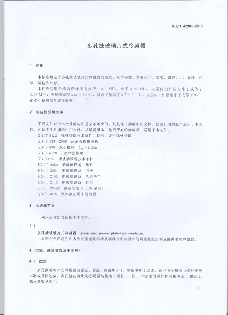 HG/T 4298-2018規(guī)范性引用文件 術(shù)語和定義【多孔搪玻璃片式冷凝器】