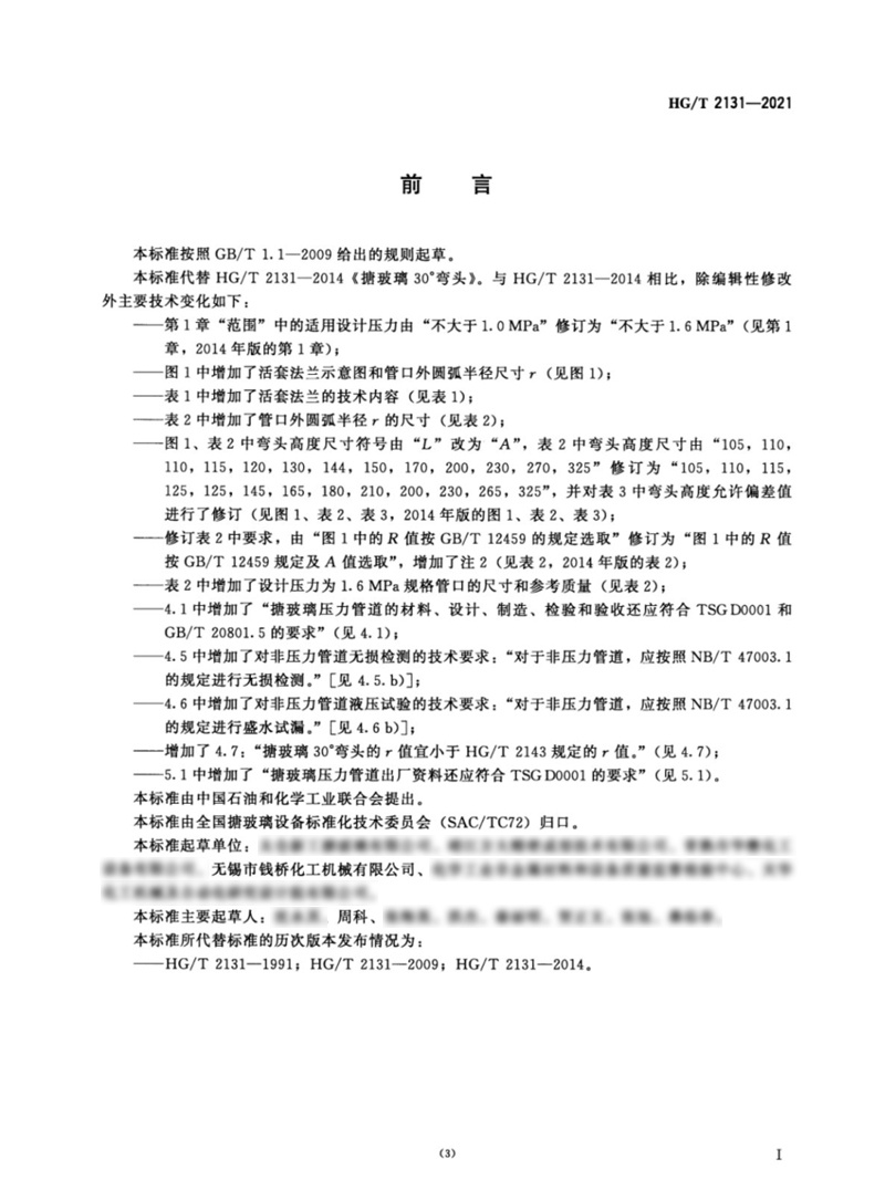 HG/T 2131-2021搪玻璃30°彎頭行業(yè)標準簡介和下載