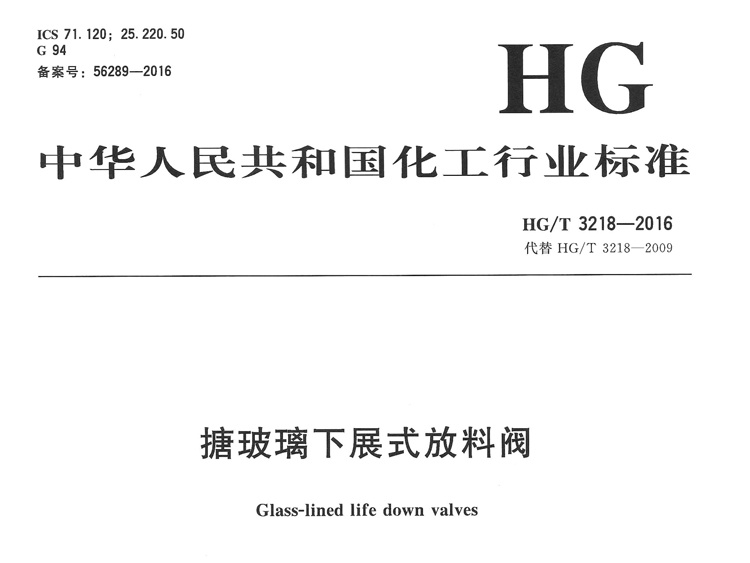 HG/T 3218-2016搪玻璃下展示放料閥標準簡介