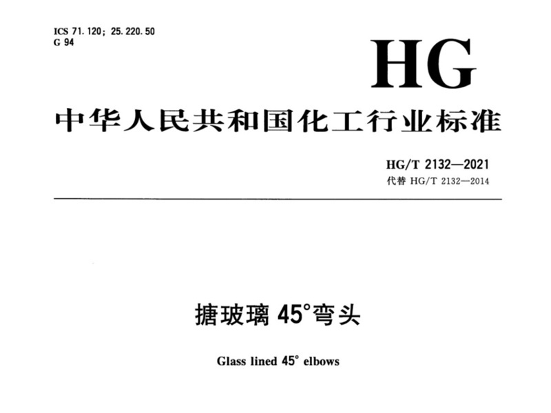 HG/T 2132-2021搪玻璃45°彎頭行業(yè)標準簡介和下載