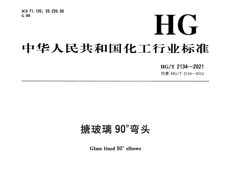 HG/T 2134-2021搪玻璃90°彎頭行業(yè)標準簡介和下載地址,無錫市錢橋化工機械有限公司為本標準起草單位之一。 ...