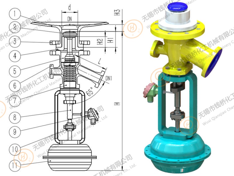 1、RECATOR 2、SPINDLE 3、SPLIT FLANGE 4、VAVLE SEAT 5、VAVLE BODY 6、