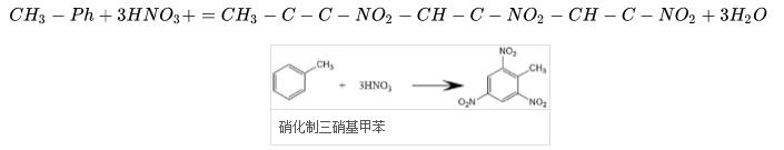 這種反應(yīng)常被利用來生產(chǎn)2,4,6—三硝基甲苯(即TNT),方程式: