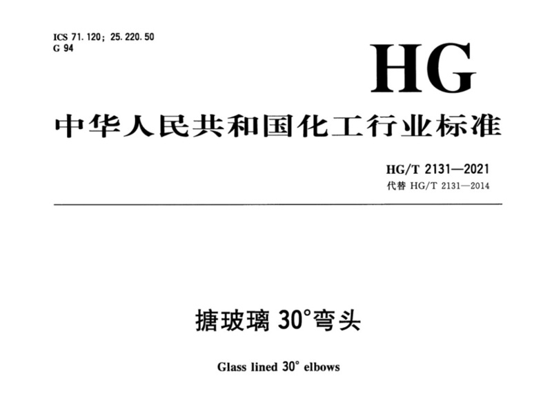 HG/T 2131-2021搪玻璃30°彎頭行業(yè)標準簡介和下載