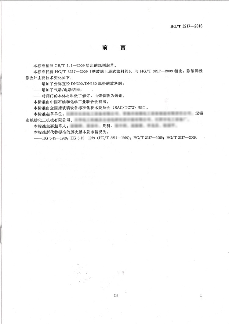HG/T3217~3220-2016搪玻璃閥門標(biāo)準(zhǔn)