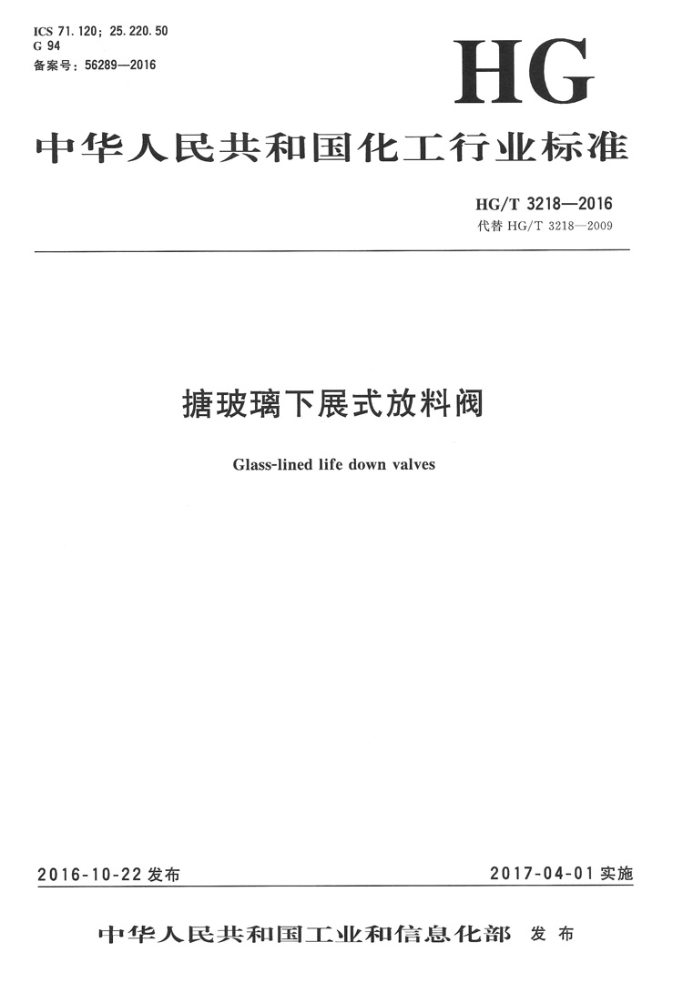 HG/T 3218-2016搪玻璃下展示放料閥標(biāo)準(zhǔn)簡介